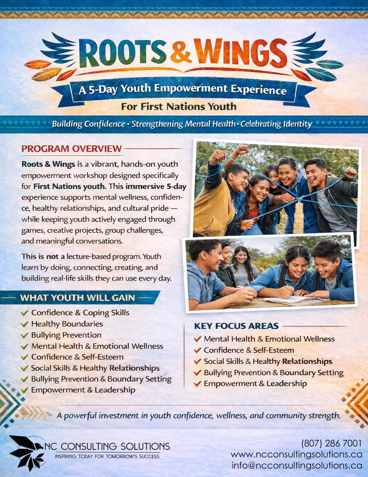 If your community is looking for a positive, engaging, First Nations–focused youth empowerment program, Roots & Wings offers a powerful investment in youth confidence, wellness, and community strength.